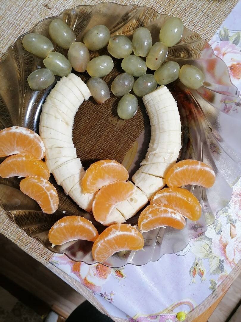 Совместное творчество всегда сближает. Попробуйте изготовить из фруктов райский остров. Ингредиенты: мандарин 🍊, банан, виноградин Способ приготовления: Банан 🍌 очистить от кожуры. Разрезать пополам. Выложить на тарелку, сделав разрезы горизонтальные на расстоянии 1-2 см. Мандарин 🍊 очистить, убрать лишнее. Разобрать на дольки. Выложить в нижнюю часть пальмы. 🌴 Делаем своеобразный остров. Теперь займётся листвой пальмы. 🌴 Виноград 🍇 разрезать пополам, вынуть семена. Выложить поверх банана, рисуя листву.