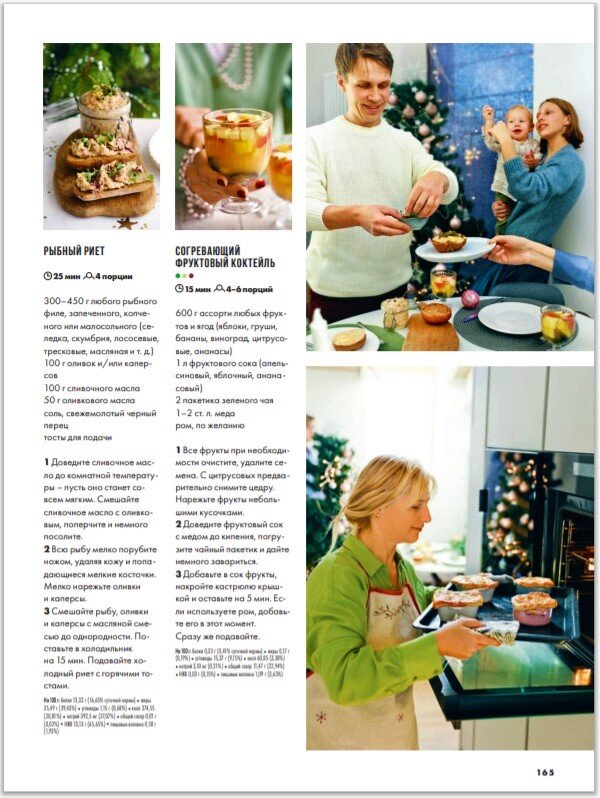 Здравствуйте, дорогие гости и подписчики моего канала! Сегодня, мы завершаем листать страницы журнала "Мой Магнит" предновогодний выпуск называется "Новый год — это что-то особенное!" Останавливаемся на тех страницах, на которых есть кулинарные рецепты, по которым можно приготовить вкусные блюда на новогодний стол. И в этот раз, мы продолжим смотреть: БРАНЧИ БРАНЧ "Доедалки" Рыбный риет Этот рыбный риет готовится из любого рыбного филе, запечённого, копчёного или малосольного (селёдка, скумбрия, лососевые и др.) Согревающий фруктовый коктейль Коктейль готовится из ассорти любых фруктов и ягод, например: яблоки, груши, бананы, виноград, цитрусовые, ананасы).