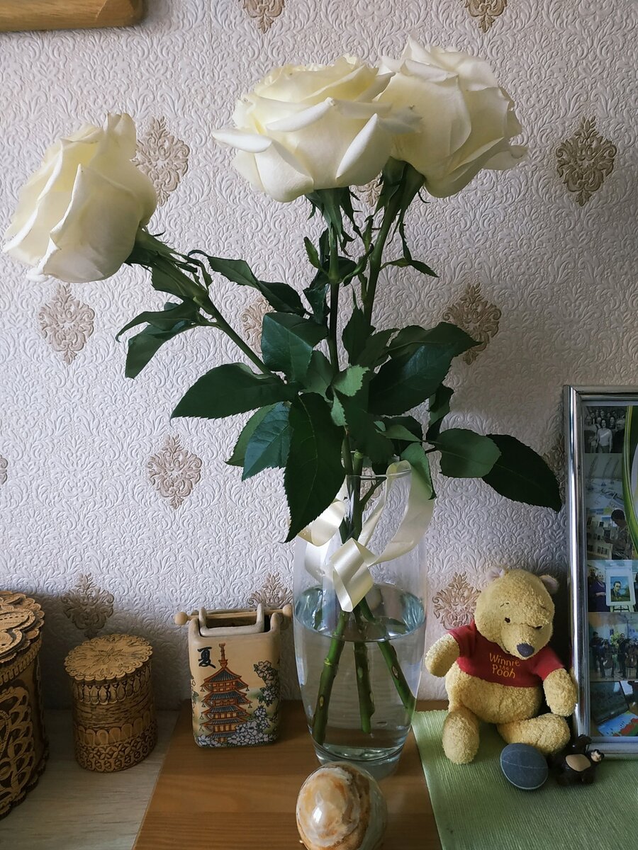 Спорить с медсестрой было бесполезно, девочка оставила цветы на тумбочке. Медсестра вскоре вернулась с литровой банкой, поставила в неё розы и вдыхая их аромат, воскликнула: