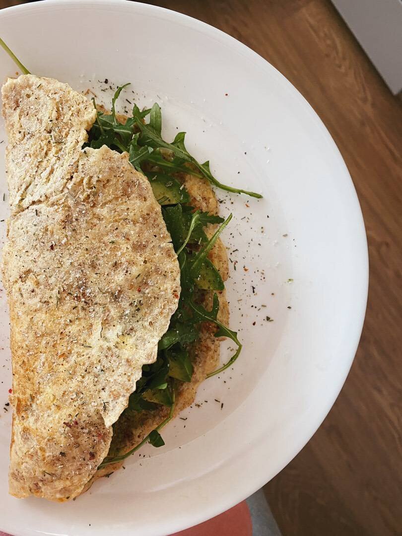 Завтрак для тех, кто соблюдает правильное питание 🥗. Калорийность такого завтрака всего 236 ккал 😉. Ингредиенты: Хлопья Nordic 4 злака (68 ккал), Кефир 1% (18 ккал), Яйцо с1 (78 ккал), Начинка, Руккола, Авокадо Способ приготовления: Смешать хлопья Nordic 4 злака/ овсяные хлопья с кефиром(можно заменить на молоко, но тогда калорий будет больше) и яйцом. Дать настояться минуты 3, чтоб хлопья набухли. На разогретую и смазанную маслом сковороду вылить тесто. Обжарить блинчик с двух сторон по 2-3 минуты. Добавить начинку можно любую, если вы на диете, то надо это учитывать). К примеру у меня добавлено авокадо 33 грамм (70 ккал) и руккола 10 грамм (2 ккал).😉