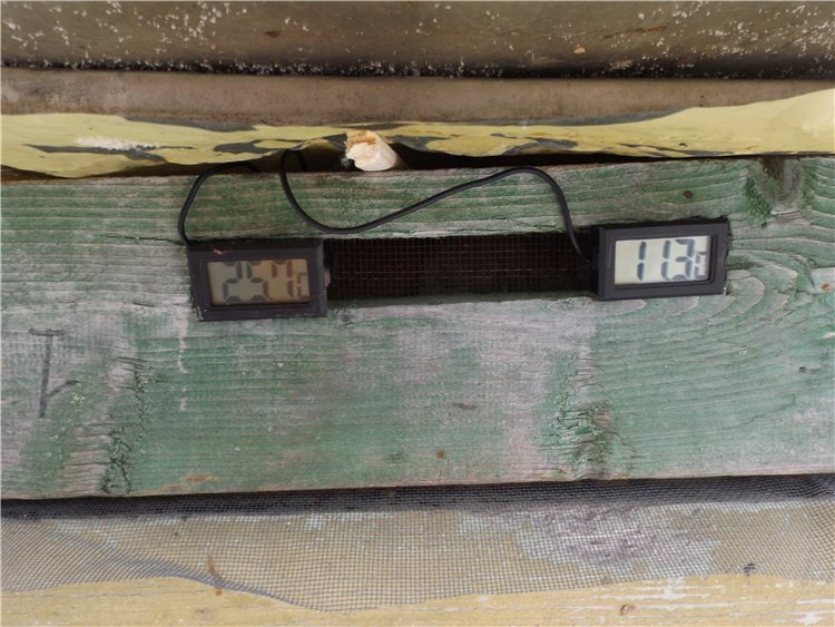 благодаря датчику электронного термометра расположенного на клубе пчелиной семьи можно хорошо увидеть, что даже при подходе пчеловода к улью, температура сверху пчелиного клуба зимующей на воле пчелиной семьи через несколько минут начинает повышаться, что говорить о беспокойстве пчел.