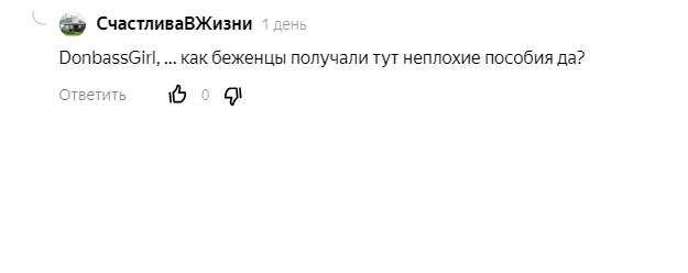 С момента переезда в РФ мне часто приходится сталкиваться с акими фразочками типа: Пособия получаете бешеные! Повезло просто! Живут за наш счет! ...и так далее. Алло, люди! Откуда столько желчи и глупой зависти? Вы хоть бы чуть головой подумали! Вы сами-то хотите бросить нажитое годами имущество, жилье, работу и карьеру, родных и близких и ради мифических пособий в несколько тысяч уехать в неизвестность с парой чемоданов? Вы в своем уме? А саме обидное то, что никаких НИКАКИХ ПОСОБИЙ мы не получали! МОжет быть (я не знаю), пособия были положены тем, кто официально получил статус беженца! Это не каждый приезжий с Донбасса! Это люди, которых организованно вывозила российская сторона автобусами с зоны активных боевых действий именно летом 2014 года, самый разгар войны. Эти люди потом жили в палаточных лагерях в приграничных зонах, а затем их поездами направляли в разные уголки России! И выбор был не велик, куда ехать: Урал, Сибирь, Дальний Восток, маленькие города - не центры. Мы, напр