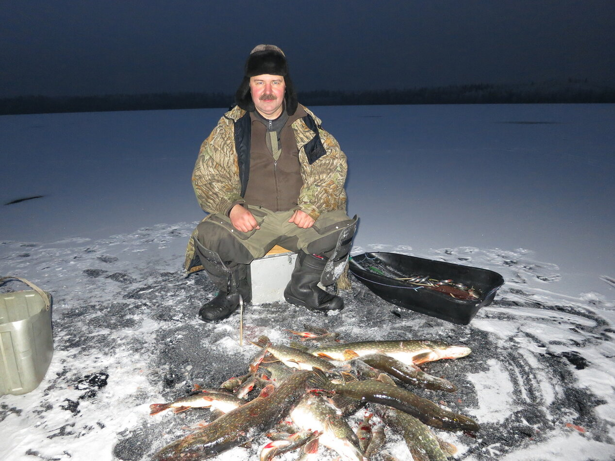 Теперь немного об уловах на второй день. Понятно, что вся прелесть рыбалки в ее непредсказуемости, и очень хочется попасть на тот клев, который бывает «вчера и завтра». И иногда это удается! Однако сухая многолетняя статистика распределения уловов между первым и вторым днем показывает соотношение 2 к 1 по общему весу, если не менялось место лова. А зачастую на второй день результат и вовсе удручающий. Конечно, вы скажете: «Все правильно, надо переставляться!». Согласен на 100%, но с одной оговоркой. Лучшим способом перестановки считаю снятие жерлиц вечером и новую выставку их на рассвете. Минус, пожалуй, только один — теряем эфемерный ночной клев щуки (на налима эффективнее сработают обычные донки). Главный плюс тоже один, но очень существенный — на рассвете мы имеем полный боекомплект свежезаряженных снастей в лунках нормального диаметра, где бойкие живцы ходят на незапутанной оснастке, и, если в этом есть необходимость или желание, на новом месте. Убедительно? Но такая рыбалка не является в чистом виде двухдневной, я называю такой тип выездов «1+1». И при возможности, конечно, лучше уехать ночевать домой или предусмотреть другие «цивилизованные» варианты.
