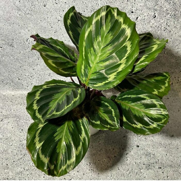 Эта калатея одна из неприхотливых. Хоть цветок и не простой, но вполне можно с ним договориться. А какой красивый!!! Согласитесь, очень эффектно смотрится. Принципы ухода. Сажаем в легкий,воздушный грунт. К универсальному добавим перлит, немного мха, уголь, кокос. Свет. Рассеянный, вынесет небольшое затенение, но не долго. Например зимой совсем недалеко от окна. Прямые солнечные лучи противопоказаны. Летом обязательно притенением, а лучше убрать с окна на полку рядом. Горшок. Строго по объёму корневой. Нельзя брать очень большой горшок. Лучше посадить в пластик ,а при желании поместить его в красивое керамическое кашпо. Температура не ниже 18, и желательно не выше 25. Влажность. Как все калатеи любит повышенную влажность. Ставим ёмкости с водой,либо включаем увлажнитель. Подкормки весь вегетативной сезон. Если зимой растение продолжает расти,то подкармоиваем раз в месяц. Поливаем умеренно, не допуская пересыхания и залива. Верхнему слою даём просыхать на 5 см. Часто поражается
