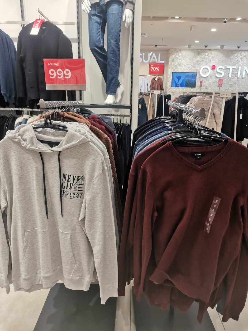 У меня столько сейчас положительных впечатлений от посещений "Остина", что возникает чувство, будто все распродажи до этого были ерундой по сравнению с той, что магазин устроил сейчас. Я так рада, что все же не прошла мимо, а решила заглянуть и поискать себе одежду, что теперь хочу поделиться обзором и с вами, в котором я постаралась собрать самые выгодные предложения. Уж про красоту вещей спорить не будем, у всех свой вкус, поэтому сосредоточимся на вопросах выгоды и экономии. Тем более, что магазин пробует формат фиксированных цен, где стоимость любой вещицы из подборки определена заранее. Да, в целом это абсолютно не новая идея, но именно в "Ostin" ее можно встретить совсем уж редко (во всяком случае до этого момента), поэтому сразу к первой подборке: Только присматривайтесь к каждому общему ценнику, потому что на некоторых написано "все по 999 рублей", а где-то указана минимальная стоимость. И в мужском отделе фикс-цен было больше, но это может зависеть еще и от города, где-то уже