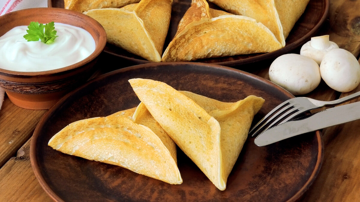 Всем привет! Блинчики Катаеф получаются пышненькие, очень нежные, мягкие и восхитительно вкусные. Именно за счет сочетания в тесте разрыхлителя и дрожжей получается такое волшебное тесто. Оно совершенно не пахнет дрожжами и если не знать об этом, то и не догадаться. А внутри блинчик наполнен ароматной сочной начинкой из грибов и сыра. Вообще такие блинчики можно приготовить с совершенно любой начинкой как сладкой, так и с более сытной- несладкой. Но их обязательно нужно приготовить всем! Они очень вкусные и готовятся буквально молниеносно. Ваша семья точно будет от них в восторге! Видеорецепт: Ингредиенты: *Тесто* -250 мл теплого молока -125 мл теплой воды -160 гр пшеничной муки в/с -1 стол.л сахара -1/4 ч.л соли -1 стол.л растительного масла -1 ч.л разрыхлителя -1/2 ч.л сухих дрожжей *Начинка* -300 гр шампиньонов -1 небольшая луковица -100 гр полутвердого сыра -соль, перец по вкусу Приготовление Для теста в миску налить теплое молоко, добавить