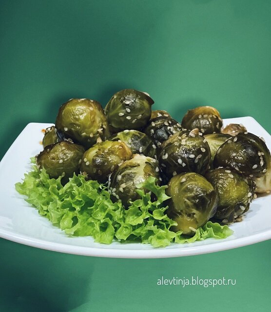 Брюссельская капуста - продукт на любителя, мягко говоря. Возможно, благодаря этому рецепту вы её сможете полюбить? Как обычно, на некоторые ингредиенты даю наводку. Надо: 400 г брюссельской капусты ( у меня замороженная) 2 ст.л. лимонного сока 2 зубчика чеснока (мелко порезать или пропустить через пресс) семена кунжута (по вкусу) растительное масло (лучше всего кунжутное) 2 ст.л. кокосовых аминокислот Приготовление В небольшой кастрюле дать закипеть воде, влить туда лимонный сок и опустить капусту. Варить минут 10-12. Лимонный сок мы добавляем для того, чтобы капуста не горчила. Готовую капусту откинуть на дуршлаг, дать стечь воде. В сковородке разогреваем 1 с.л. растительного масла (у меня - виноградной косточки), обжариваем капусту пару минут, добавляем кунжут, чеснок и соус с аминокислотами. Обжариваем ещё минутку. Подаём как самостоятельное блюдо, или с гарниром. Вкуснее всего с рисовой лапшой. Для тех, кому недостаточно соли, можно блюдо дополнительно полить нашим соусом