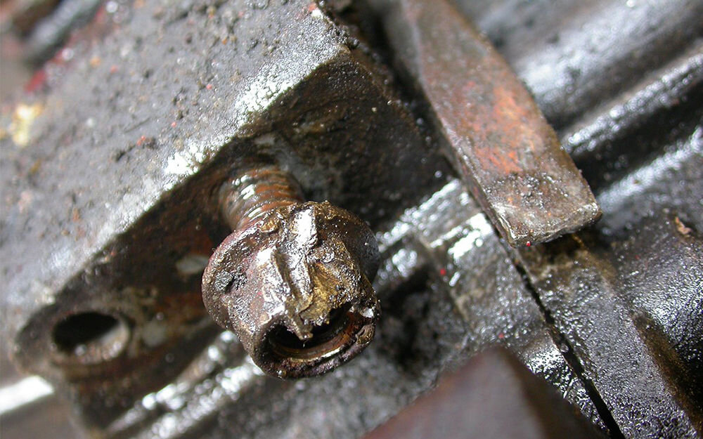 Это помогает, пока вы понимаете, как это работает. Думайте о ржавчине как о клее/герметике. Если ржавчина запечатала область вокруг головки болта, пенетрант не сможет проникнуть внутрь. Но если вы примените вибрацию, чтобы разрушить ржавчину, это будет совершенно новая игра. Я использую пневматическое долото с головкой молотка. Я наношу пенетрант и нажимаю на спусковой крючок на головке болта и вокруг болта. Затем я наношу больше пенетранта. Заметна разница в количестве проникающего пенетранта до и после разрушения ржавчины. Мне никогда не приходилось пользоваться фонариком. На самом деле, вся концепция резака заключается в том, чтобы развернуть болт, чтобы сломать ржавчину. Зачем использовать для этого тепло, если то же самое делает воздушный молот? Ключ к удалению ржавых болтов - сначала сломать ржавчину. Тогда пенетрант может попасть в зону и смазать Это имеет смысл, но вы не нагреваете в первую очередь область резьбы (полости). Вы наносите его на внешнюю часть ореха. Так не должно
