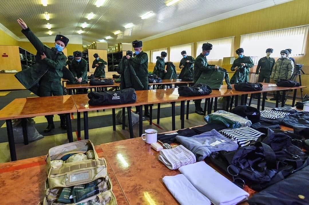 После длительного ожидания на призывном пункте, за Вами приезжают офицеры с воинских частей. Вас строят на плацу и проверяют по списку. После начинается выдача одежды и всего необходимого имущества. Вам выдадут обмундирование и несессеры с шампунем, бритвенными принадлежностями, зубной щеткой и пастой, мылом и другими необходимыми принадлежностями. Обязательно выберите берцы по размеру, потому что они на целый год и новые Вам никто не выдаст. *Если вы заблаговременно не подстриглись коротко, вас подстригут прямо там*. На призывном пункте Вас обязательно кормят. Также там должна быть организована продажа товаров первой необходимости. Обычный магазин, но цены там в 2 раза выше. Затем с Вами проводится воспитательная и культурно-массовая работа, обычно рассказывают об истории России, службе в армии, присяге. Как только Вас передели и выдали всё необходимое, сразу подойдите к офицерам и спросите когда и во сколько поезд. И сразу звоните своим семьям, чтоб они успели приехать заранее.