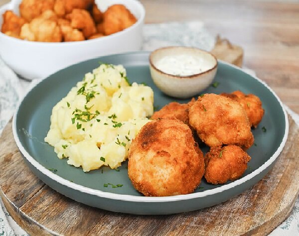 Цветная капуста в кляре – хороший способ приготовить этот полезнейший овощ, чтобы увеличить количество витаминов, микроэлементов и клетчатки в своем рационе. Зимние праздники близятся к концу, и все чаще хочется готовить легкие постные (или вегетарианские) блюда. Соцветья цветной капусты, обжаренные в яйцах и панировочных сухарях способны заменить котлеты, поданные с отварной картошкой. (Кстати, котлеты из цветной капусты тоже получаются супер-вкусные!) Кусочки жареной капусты в кляре из яиц и панировочных сухарей имеют хрустящую корочку, которая покрывает нежную и сытную мякоть этого поистине замечательного овоща. Если вы хотите приготовить блюдо без яиц, замените их густым кефиром или несладким йогуртом. К цветной капусте в кляре хорошо подходит гарнир из риса, но лучше всего – простая отварная картошка со сливочным маслом. Также можно подать свой любимый соус или соленья. Ингредиенты: Приготовление: Первое, что нужно сделать, это почистить цветную капусту и разделить ее на небольшие