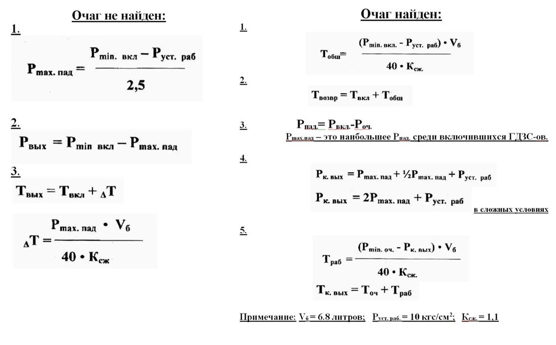 ВАЖНО: при проведении расчетов полученные величины падений давлений округляются в большую сторону, время работы, полученное в минутах, округляется в меньшую сторону.