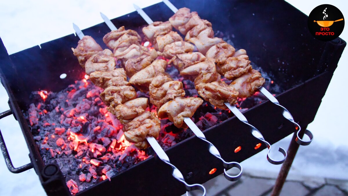 Все мы любим шашлык, мясо получается с невероятным запахом и вкусом дымка. Сегодня я покажу, как мой папа готовит шашлык из бедра курицы, а на гарнир делает вкуснейшие и очень ароматные овощи на гриле. СПОСОБ ПРИГОТОВЛЕНИЯ: Куриные бёдра моем и обсушиваем бумажным полотенцем. Далее снимаем кожу и из каждого бедра вырезаем косточку (это наверное самый ответственный момент). Затем мясо разрезаем на две половинки. Теперь курицу перекладываем в миску и добавляем специи: 1 ч.л. соли, 0,5 ч.л. чёрного молотого перца, 1/4 ч.л. перца Чили, 1 ч.л. молотой паприки, 0,5 ч.л. молотой зиры и 5 ст.л. растительного масла без запаха. Количество специй рассчитано на 1 кг мяса. Хорошо перемешиваем мясо со специями, даём постоять при комнатной температуре 5-10 минут и только после этого добавляем 4 зубчика чеснока, пропущенного через пресс. Снова перемешиваем. Чеснок добавляем в последнюю очередь для того, чтобы он не забил раскрывшиеся ароматы специй. Далее миску с мясом накрываем пищевой плёнкой и ста