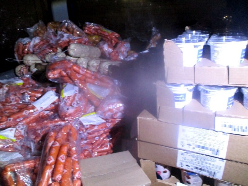 При проведении досмотра ветеринарные инспекторы установили, что на 300 кг готовой мясной продукции и 15 кг молочки производства предприятий Республики Беларусь отсутствовали сопроводительные документы. Груз перевозили с грубыми нарушениями условий транспортировки, в антисанитарии.
