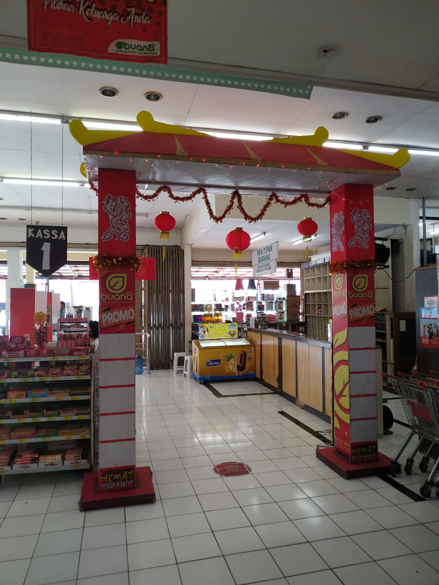 Уже несколько недель как готовы. Универмаг "Буана" ещё в начале января представил всё, что нужно, для украшения дома и себя на Имлек - китайский новый год, который состоится в этот раз с 31-го января на 1-е февраля. Одного из этих милых котиков дитё хотело унести с собой. Но помимо того, что денег на него нет, его ещё и ставить дома некуда. А это стандартные фонарики и прочая новогодняя ерунда: Нам это всё не нужно, так как отмечать новый год не будем. А вот некоторые соседи непременно закупятся пиротехникой и будут запускать фейерверки. Из одежды на китайский новый год предлагается следующее - на девочек и девушек побольше и поменьше: И на малышей: На мальчиков: А вот такую композицию предалгают на семью: Цены на одежду высокие, как и на все традиционные товары перед праздниками - от 500 рублей. Но есть люди, которые к китайскому новому году покупают такую одежду и атрибутику, для большинства же населения Индонезии, это просто ещё один государственный выходной. А Вы отмечаете новый