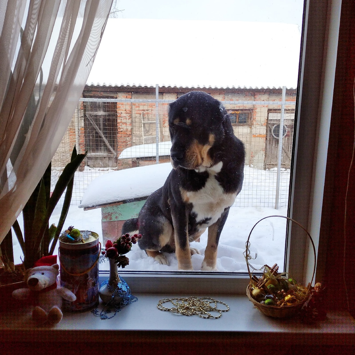 Ясное дело, что пообщаться с собакой хочется, а выходить самому на мороз-нет. Вот хозяева и приглашают своих питомцев в гости. Тем более, что кругом снег и грязи домой он не натащит.