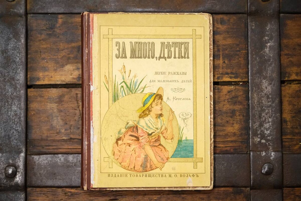 А.В. Круглов “За мною, детки”, издательство М.О. Вольфа. На сегодня печатные издания для детей постоянно входят в топ самых часто реставрируемых книг нашей мастерской. Ведь для кого-то такая литература является своеобразным окном в светлые воспоминания, а других привлекают яркие иллюстрации, созданные известными художниками эпохи. На этот раз мы хотели бы поделиться результатами работы над замечательным изданием “Легких рассказов для крошечных детей” русского писателя, поэта, издателя и журналиста Круглова Александра Васильевича. Несмотря на то, что книгой наверняка пользовалось не одно поколение, издание дошло до нас в относительно неплохом состоянии. Правда во время очередного ремонта в книге перепутали местами рассказы. Нашим мастерам предстояло промыть листы, разобрать и перешить книжный блок, а также восполнить утраты на сторонках книги. Обратите внимание, что мы стараемся весь процесс работы делать вручную, начиная от сборки книги и заканчивая красочным восполнением трещинок! Это