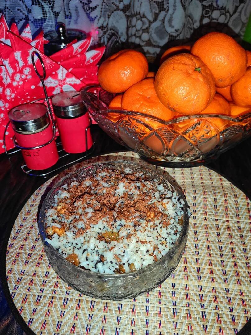 Этот рецепт я нашла года три назад и теперь только эта кутья мне нравится! #кутья #рождество Ингредиенты: Риса, Изюма, Мака, Орехи грецкие, Меда, Сахара (можно без него) Способ приготовления: Рис тщательно промыть сварить до готовности. Моём мак, заливаем его кипятком, накрыть крышкой и оставить на 30 минут. Изюм промыть и залить на 10-15 минут кипятком. Орехи высушить в духовке или на сухой сковороде, затем очистить от шелухи и измельчить. Готовый рис выложить в миску, добавить в нее мак, изюм, орехи и мед. Перемешать все ингредиенты и подавать кутью к столу. Приятного аппетита!