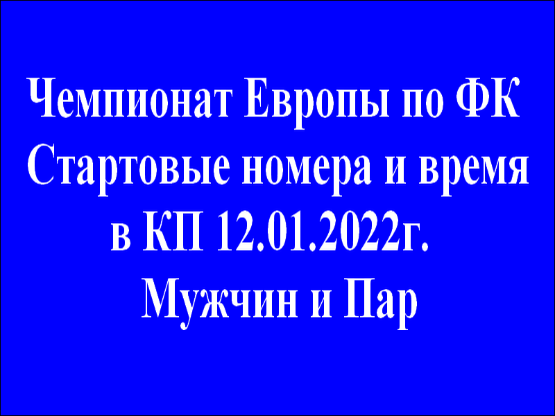 Стартовые номера (время) Мужчин и Пар 12 января на Чемпионате Европы по Фигурному Катанию в Таллине