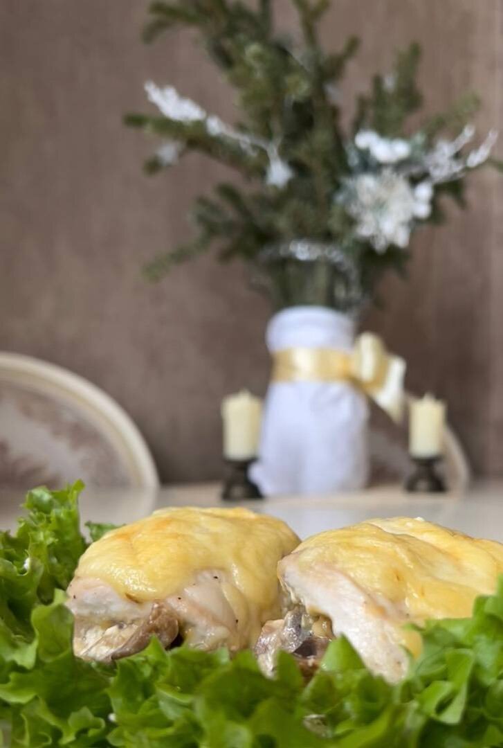 Ингредиенты: Куриных филе, Сыр плавленый ломтевой, Шампиньоны, Лук, Сыр желтый, Сливки 10%, Соль, перец, Растительное масло для жарки Способ приготовления: Обжариваем на растительном масле шампиньоны с луком. Отбиваем кухонным молотком куриное филе. Солим, перчим по вкусу. На филе выкладываем ломтевой сыр, сверху грибы и сворачиваем в рулетиком. Выкладываем в форму для выпечки. Поливаем сливками и посыпаем сыром. Ставим в разогретую духовку до 180 градусов около 30 минут. Приятного аппетита! Видео рецепт в Инстаграме delicious____food__