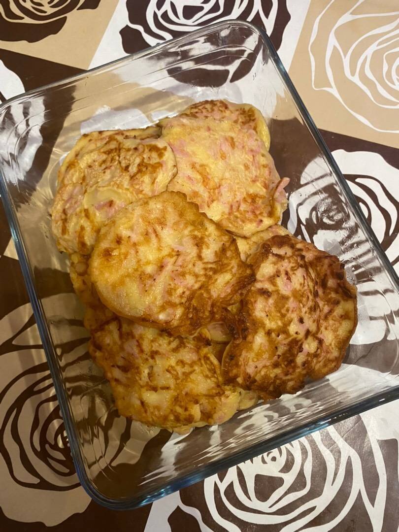 Ингредиенты: яйца, сыра, колбасы, мука , майонез , сметана Способ приготовления: Натереть сыр и колбасу. Добавить яйца, майонез, сметану и перемешать. Насыпаем муку, перемешиваем и выкладываем на сковороду. Жарим жарим, пока не пожарим))). Готово. Приятного аппетита 😉.
