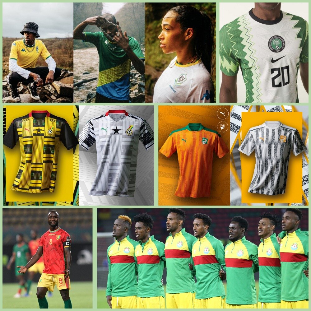 На этом Кубке Африки в Камеруне тоже целый парад дизайнерских идей. Снова эксперименты с яркой палитрой цветов, ведь в Африке целое семейство стран чьи национальные цвета зелёный, жёлтый, красный. На этом турнире среди таких стран Камерун, Гана, Сенегал, Мали, Гвинея, Эфиопия, Буркина-Фасо, Зимбабве, Коморские острова, Гвинея-Бисау.