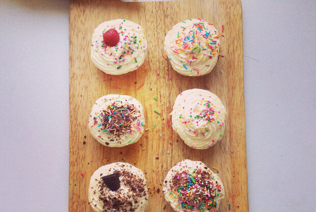 ИНГРЕДИЕНТЫ ПОРЦИИ 5 Пшеничная мука 1,5 стаканов Сахар 1 стакан Соль ½ чайные ложки Разрыхлитель ½ чайные ложки Топленое масло 100 г Куриное яйцо 1 штука Сода ¼ чайные ложки Сметана 20%-ная 2,5 столовые ложки Молоко ¾ стакана Ванильный сахар 3 чайные ложки Сливки 30%-ные 500 г Сахарная пудра 50 г 1.Сахар, яйцо, 2 ч. л. ванильного сахара, сметану и молоко смешать венчиком или вилкой. В перемешанную смесь добавить растопленное (остывшее) сливочное масло и еще раз хорошо перемешать. 2.Отдельно смешать муку, разрыхлитель, соду и соль. 3.Просеиваем мучную смесь через сито в кастрюлю с молочной смесью. Хорошо все перемешать венчиком до однородного состояния. 4.Получившееся тесто разлить по формочкам, заполняя формочки на 2/3, т. к. тесто хорошо поднимается в процессе выпекания. Ставим в разогретую до 180 градусов духовку на минут 10–15. Проверить готовность зубочисткой (капкейки должны быть белого цвета, если они начинают «коричневеть», значить уже подсушиваются). 5.Готовим крем для капкейк