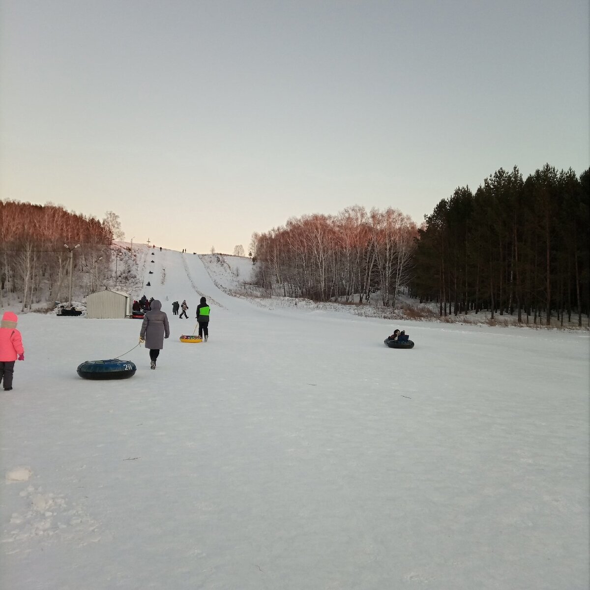 Я очень удивилась такому заявлению мужа, что на каникулах нужно еще на плюшках покататься. Если раньше я вытягивала его куда-нибудь, а могла так и не вытянуть, то одно дело, то другое, вот и выходные прошли, а за ними и зима, и мы так не съездили ни на какую горку покататься на тюбингах. То нынче муж «заразился» моей активностью и предложил съездить на горку. Выбор у нас был не велик, либо ехать в сосновый бор около Ишима, либо в Казанский район, в деревню Боровлянка, где есть база отдыха и горка, да не простая, а с подъемником, а значит больше, чем в бору. В бору мы уже были разок, было, конечно, здорово, но воспоминания остались не самые приятные. Владюшка был еще маленький (Ромки даже в мыслях не было )) ), и он все время требовал, чтобы мы его катали, и в горку подниматься сам не хотел, а надо чтобы везли его в плюшке! Можете себе представить, как мы вымотались! Да еще ведь не просто кататься приехали, а с шашлычком! И вот не постоять ни сколько, с людьми не пообщаться, а только к