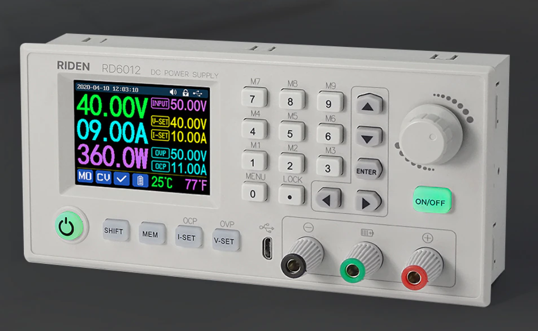 ✅ Хочу представить вашему вниманию достаточно интересный модуль с сайта AliExpress, регулируемого понижающего преобразователя напряжения RD 6012 (ссылки оставлю под описанием). Данная модель на 12 ампер, понижает постоянное напряжение от 60 вольт и ниже. ✅ Можно выбрать версию с Wi-Fi и без него, для совместного использования модуля RD 6012 с компьютером или смартфоном, понадобится скачать и установить приложение. После этого появится возможность управлять модулем и всеми функциями блока питания с вашего компьютера. ✅ В представленной модели преобразователя имеется опция зарядки (причем правильность зарядки) практически всех типов аккумуляторов, по завершению заряда аккумулятор физически отключается от зарядного устройства. ✨ К особенностям данного конвертера стоит отнести: ✅ В качестве источника питания для конвертера напряжения RD6012 можно использовать импульсный блоком питания, что рассчитан на выходную мощность 800 ватт при напряжении 60 вольт, соответственно, максимальный зая