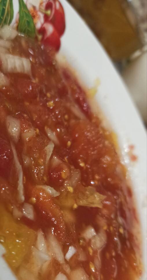 Ингредиенты: Кислые помидоры (бочковые), сахара, масла, большая луковица Способ приготовления: Снимаем шкурку с кислых помидоров (бочковых) разбираем на кусочки, добавляем 2 чайные ложки сахара, 1 чайную ложку масла и нарезаем лук. Готово, приятного аппетита.