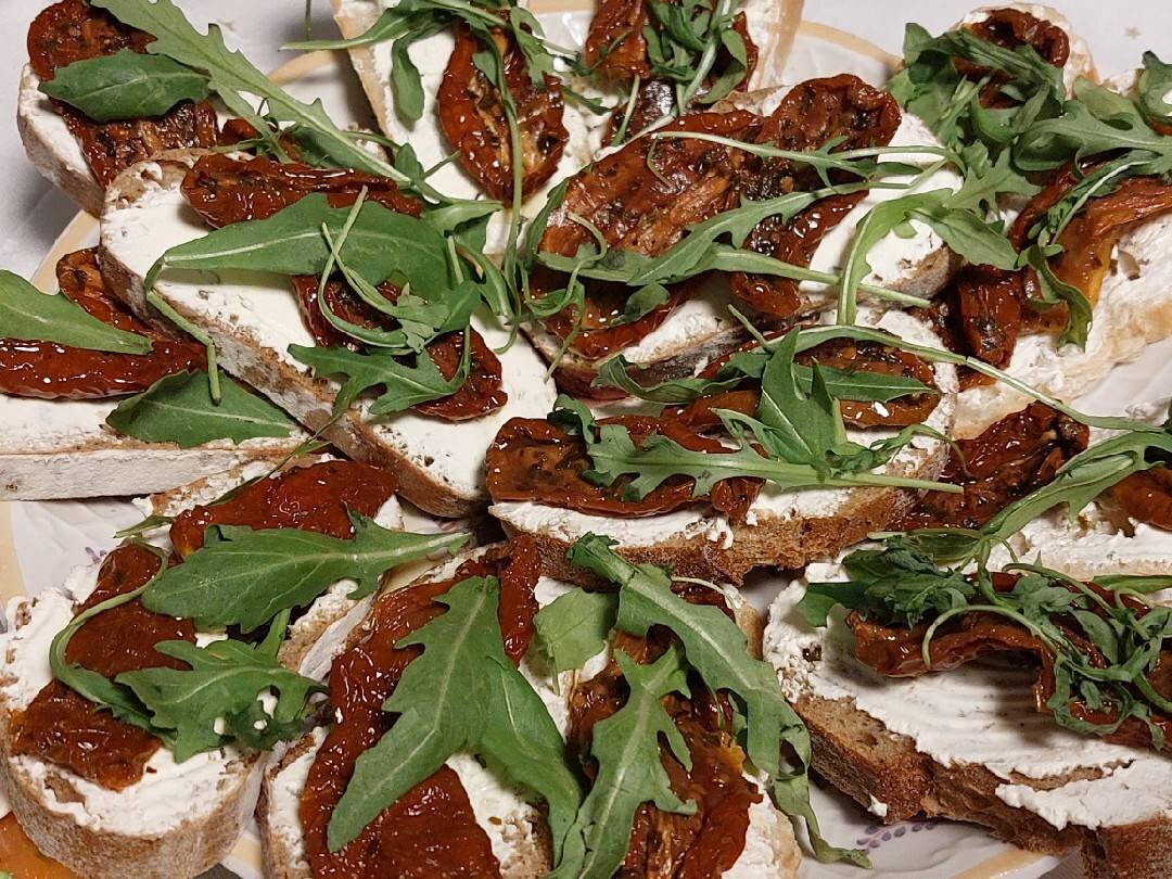 Ингредиенты: Чиабатта, Вяленые томаты, Творожный сыр, Руккола