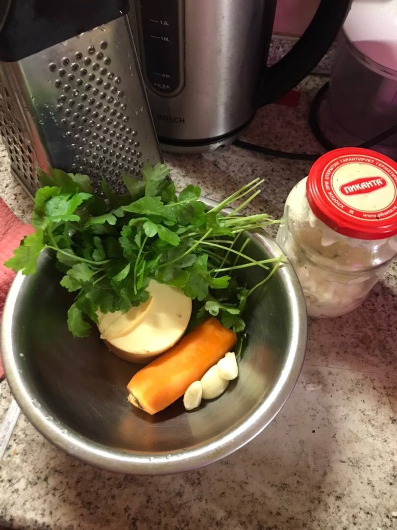 Можно кушать и как салат, и намазывать на багет или делать рулеты с ветчиной Ингредиенты: Сыр колбасный, вареных яйца, Небольшая морковь, Петрушка, Чеснок , Соль , Майонез (желательно домашний) Способ приготовления: Сыр натираем на средней тёрке. Трём морковь на тёрке для корейской моркови. Мелко рубим петрушку. Выдавливаем через чеснокодавилку чеснок. Солим по вкусу и добавляем майонез.