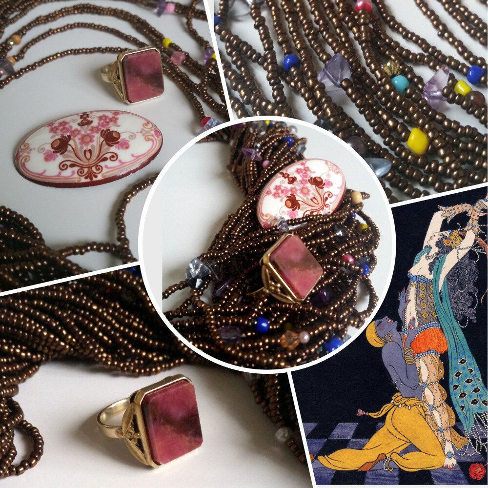 Подборка в стиле модерн начала 20 века. Немного романтизма, символизма и декоративности. 1. Бусы многорядные разноуровневые Чехия 70-е