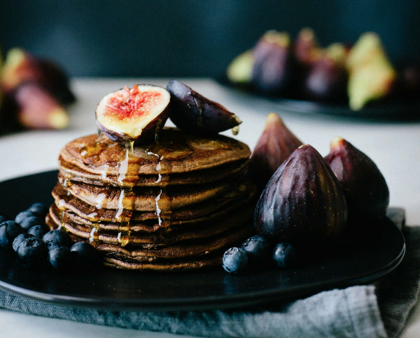 На днях я приготовил на завтрак оладьи с бананами и яйцом, используя только бананы, яйца и белковый порошок. У нас в семье их очень любят, поэтому я немного повозился с рецептом и придумал эту соблазнительную стопку. Наслаждайтесь! x Ингредиенты 3 больших банана (или 4 средних) 2 яйца + 1 яичный белок 1 чайная ложка ванили 2 ложки шоколадного протеинового порошка 1 столовая ложка масла нейтрального вкуса (например, растительного или кокосового) Мед Сезонные фрукты - я выбрал инжир, малину и чернику Густой йогурт, марсапоне или сливки (по желанию) Инструкция Примечания Без глютена