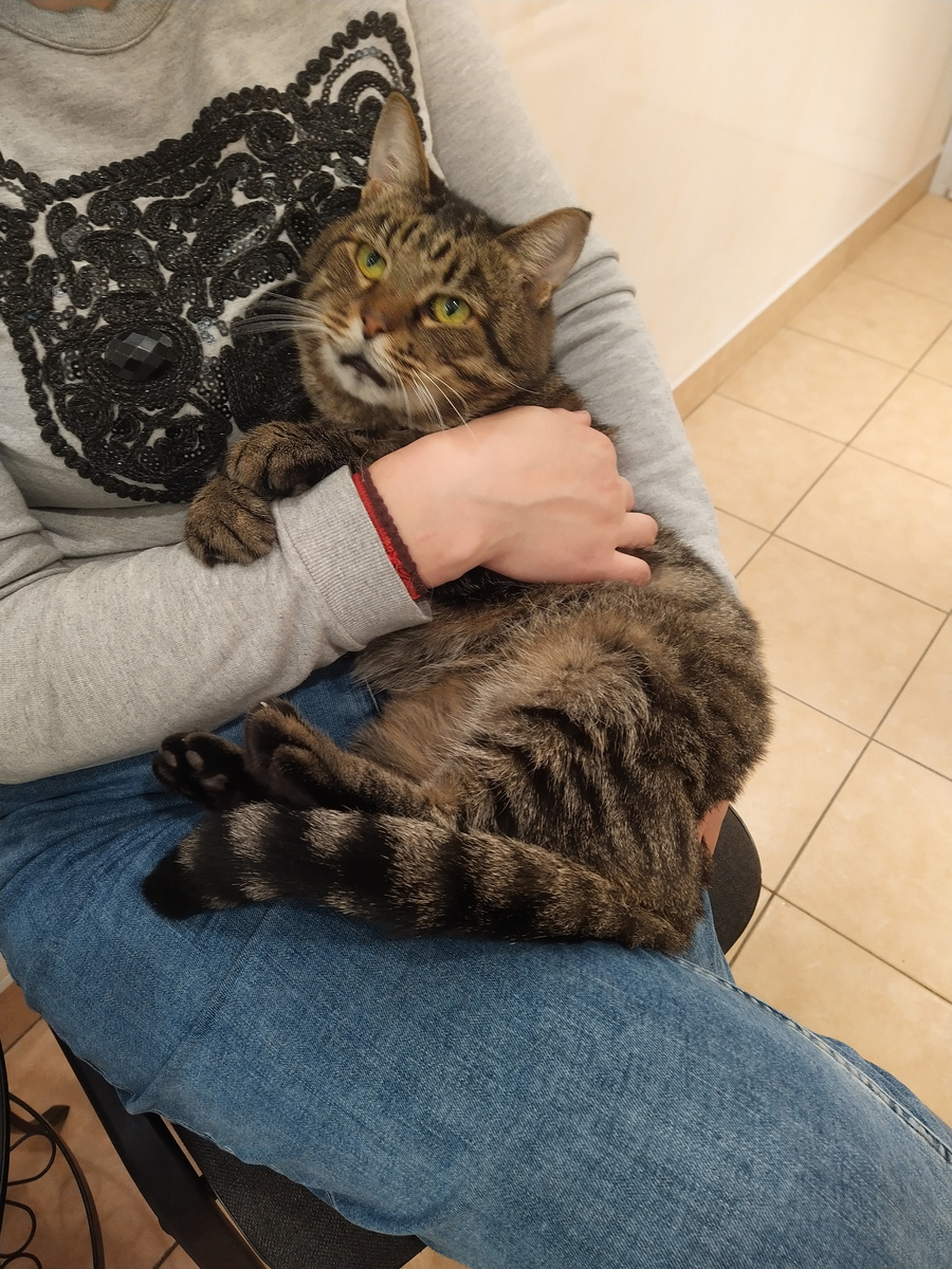 г.Пермь Ездила вчера с Гекусей на плановый осмотр и..... Смотрю сидит женщина с нашим Базилькой на руках! Администратор клиники сказала, что его забирают. Немного постояв в шоке, переварив информацию, сильно обрадовалась ))) Как я узнала, женщина занимается продажей корма и сотрудничает с клиникой. Уже не первый месяц она угощала Базильку вкусняшками и думала забрать его. Вчера был тот самый день, когда человек принял твердое решения подарить котику дом. Базиля будет 6-м котом. Хозяйские кошки все спокойные, никто никого не обижает. И шесть кошек это не 15 и не 20 как у меня, может ему там будет хорошо и болезнь не проявится. Было видно, что Базиль хорошо знает женщину, доверяет ей и чувствует себя максимально комфортно в ее обществе. Сегодня уже прилетела весточка из дома. Будем надеяться, что в этот раз Базиль обрел свою настоящую семью и другие кошки его не смутят. После смерти первой хозяйки, где он только не побывал, с него хватит. Спасибо Вам за заботу о нем, помощь для него и в