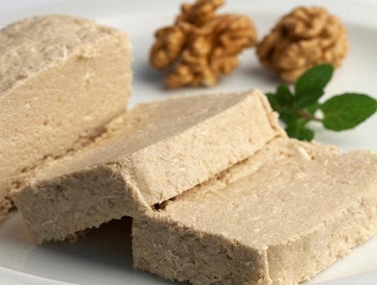 Халва - это восточная сладость родом из Ирана, приготовленная из карамельного сиропа и перемолотых ядер орехов или других семян. Полезные свойства халвы определяются тем, что халва приготавливается без мучного компонента, что делает ее более полезной, чем пирожные и сдобные печенья. Халва имеет слоистую структуру за счет которой ей придается особый вкус и способность перевариваться в желудке и кишечнике. Самая вкусная и полезная халва та, что вырабатывается вручную, при производственном изготовлении сладость теряет множество положительных влияющих на организм качеств. Употребление восточной сладости приводит к след. изменениям в организме: • Омолаживает клетки, противостоят старению • Поддерживает работу сердца и сосудов • Наличие витамина Д позволяет поддерживать правильный метаболизм во всем организме, способствовать усвоению минералов, что приводит к укреплению костей, витамины группы B которых достаточное кол-во во всех видах используемых для приготовления сладостей продуктов, он