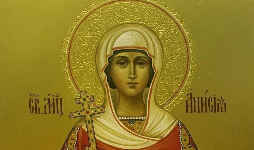 В дни царствования императора Максимиана, печально прославившегося жестокими гонениями на христиан, жила в греческом городе Солуни прекрасная отроковица, носившая имя Анисия. Совсем юной была девушка, но имела такую крепкую веру во Христа, какую имели не многие мудрые старцы. Рано осталась Анисия сиротой - от тяжелой болезни умерли ее родители, воспитавшие девушку в духе христианского благочестия. В наследство Анисия получила много золота и серебра, поместья и стада, рабов, многочисленные дорогие одежды и утварь, украшенную жемчугом и драгоценными камнями. Девушка помнила слова Спасителя о богатстве. и еще говорю вам: удобнее верблюду пройти сквозь игольные уши, нежели богатому войти в Царство Божие. Мф. 19:23 Поэтому рассудила она так: Управление поместьями приучает к гневу, красивые одежды учат тщеславию, ожерелья заставляют горделиво подымать голову в ожидании людского внимания - все эти богатства непременно будут вовлекать меня во грех. Лучше продам все и пущу деньги на благое д
