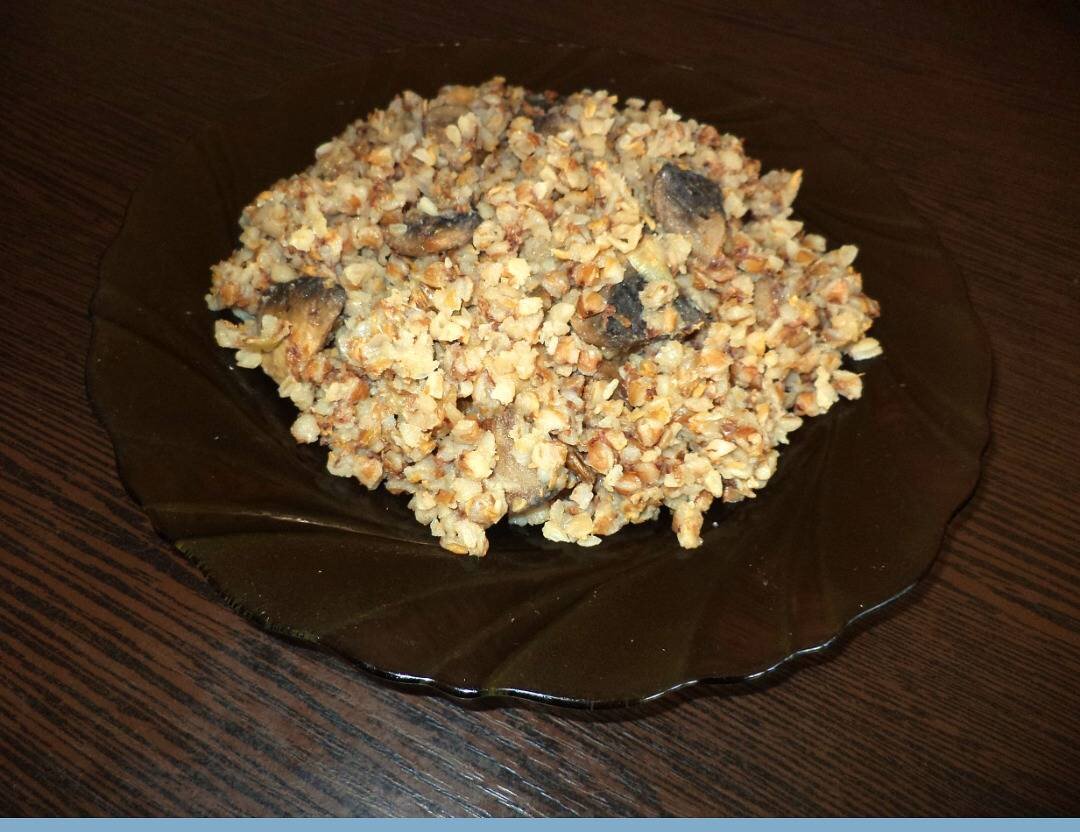 Ингредиенты: гречневой крупы, воды, шампиньонов, репчатого лука, соли, растительного масла Способ приготовления: Подготовить нужные ингредиенты. Грибы почистить, разрезать на 4 части (если очень большие, то помельче). Лук нарезать кубиками. Гречку промыть. Вкллючить мультиварку на режим "Жарка" и обжарить лук 10 минут. Добавить грибы и жарить еще 5 минут. Теперь добавить кашу, посолить, перемешать. Влить 700 мл кипятка. Включить режим "Каша" или "Гречка" на 35 минут. Крышку открыть только, когда прозвучить сигнал. Гречка готова.
