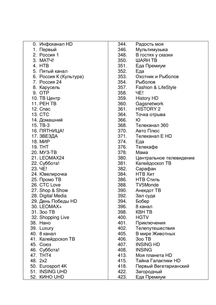 Списки Триколора с номерами каналов через спутник и интернет.