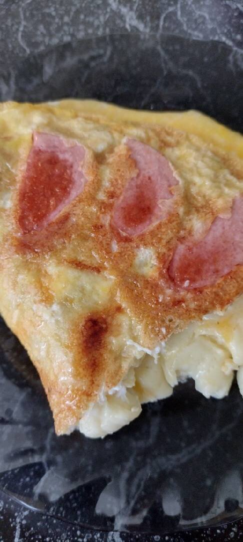 Ингредиенты: яиц, большая сарделька, молока, сулугуни, Соль, Растительное масло Способ приготовления: Яйца взбить вилкой с солью и молоком сулугуни порезать кубиками колбасу на произвольные кусочки Жарить на раскалённом масле до готовности, сначала выложить колбасу затем влить яично-молочную смесь и сверху посыпать сулугуни.