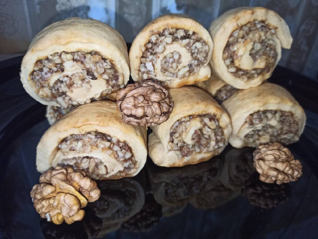 Печенье или мини рулетики...но в любом случаи это очень вкусно, ароматно, сытно...кстати вместо орехов можно использовать сухофрукты🤗👍 #випічка #сладкаявыпечка #десерт Ингредиенты: Тесто, мука , сметана, яйцо, сливочное масло (холодное), разрыхлитель, ванилин, соль, Начинка, орехи очищенные, мёд (можно сахар) Способ приготовления: В миску просеиваем муку, разрыхлитель и натираем или мелко режим сливочное масло (предварительно положите в морозильник), всё перетираем. В другой миске, соединяем сметану, яйцо, ванилин, соль, хорошенько перемешиваем. Соединяем сыпучие и жидкие составляющие и замесите мягкое эластичное тесто. Поначалу тесто сильно липнет к рукам, но достаточно быстро начинает отставать и от рук, и от стенок миски. Скатайте тесто в шар, накрываем и оставляем на 20минут. Можно покрасить в холодильник, я не клала. Готовим начинку. Орехи очищаем, измельчаем, добавляем мед и хорошенько перемешиваем. Если мед твердый, предварительно подогрейте на водяной бане. Делим тесто на 2 ч