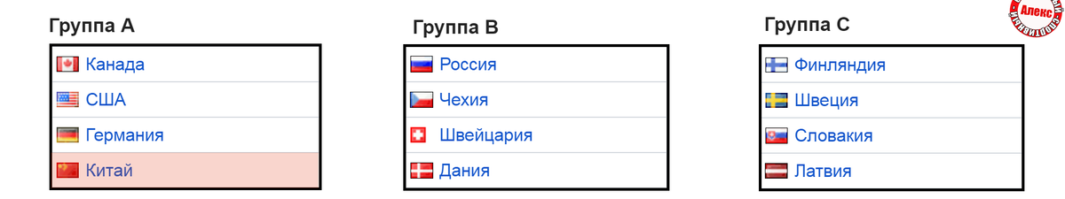 *** *** В первую группу вошла мужская сборная Канады, США, Германии и Китая. Во второй группе сыграет Россия, Чехия, Швейцария и Дания. В третий квартет попала Финляндия, Швеция, Словакия и Латвия. 8 сборных получили автоматические путёвки на турнир, благодаря высокому рейтингу. Вот, эта таблица: Дания, Латвия и Словакия – победители отборочных групп, о чём я рассказывал ранее. Вот, они можете ознакомиться. Китайская Народная Республика попал на турнир, как хозяйка зимней Олимпиады. Когда начнётся хоккейный турнир? 9 февраля в 1-м туре России и Швейцарии доверили открыть соревнование. Начало матча в 11:40 по Москве. Сборная России будет выступать без флага и гимна. В 16:10 Чехия сразится в этой же группе с Данией. Больше матчей в этот день не будет. 10 февраля первый тур проведёт Группа «С». Швеция – Латвия, Финляндия – Словакия. В этот же день сыграет группа «А». Сборная США начинает с Китаем, а Канада проверит Германию. Оба матча пройдут в 16:10. 11 февраля в пятницу запланировано