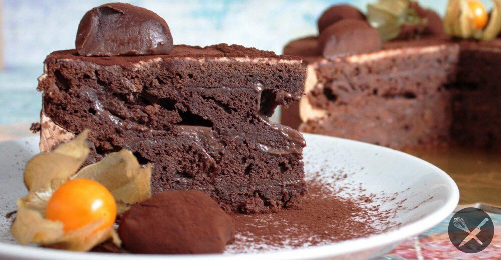 5. Верх порываем глазурью: 1 ст. ложка какао, 1 ст. ложка сметаны, 1 ст. ложка сахара, 1 ст. ложка сливочного масла - все разогреть, хорошо растереть до однородной консистенции и быстро залить торт.