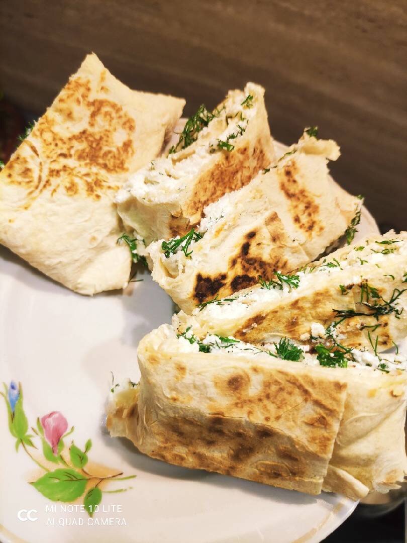 Делаю такой полезный лаваш себе на завтрак или на перекус. Это вкусно, быстро и не прибавит лишних кг 😀. Ингредиенты: Лаваш , Творог или творожный сыр, Зелень (какую любите) у меня укроп, Соль, перец Способ приготовления: Смешать творог, нарезанную зелень и специи. Распределить по лавашу и завернуть в рулет. Поджарить на сухой разогретой сковороде до корочки. Приятного аппетита 🤤.