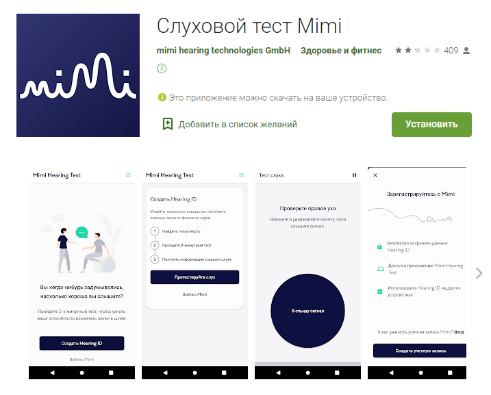 С годами, при частом влиянии громких звуков на работе, прослушивании музыки в наушниках на высокой громкости, слух ухудшается. И не всегда человек может понять, что происходит с его слухом. Симптомы потери слуха остаются часто незамеченными на ранней стадии. Нужно и важно проводить диагностику хотя бы раз в год в целях профилактики. Это можно сделать всего за несколько минут, просто установив приложение на смартфон. Mimi Hearing Test - позволит оценить уровень вашего слуха, к тому же, по заверению разработчиков, приложение имеет медицинскую сертификацию и уже несколько лет остается самым популярным средством для проверки слуха. Все мы понимаем, что такой тест не ставит диагнозы. Если у вас имеются какие - либо подозрения или опасения, приложение не заменит вам консультацию специалиста. Оно служит для профилактики слуха. 1. Скачайте приложение из App Store (https://apps.apple.com/us/app/mimi-hearing-test/id932496645) Google Play (https://play.google.com/store/apps/details?id=io.mimi.