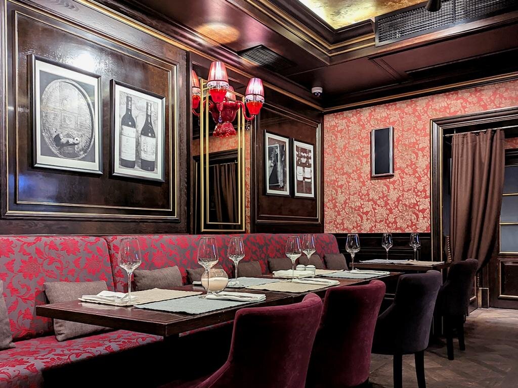 В Claret много нового — раз; да и давно не был, только на «Битвах одного блюда» сравнивал кухню, а с тех пор прошло года три — пора освежить бокал впечатлений. Тем более это редкое место, где и вечером, и в два часа воскресных, без скидок и ланчей, заполнено 2/3 зала. Жизнь! Центр, отель, фигура Владельца с книжками, в чем дело? Ведь это ресторан, даром что «кафе» на вывеске, и недешевый. Приотельник, конечно: чашка эспрессо за 300, куриный бульон — 450, чай 0,4 — 400, вода Panna по 1200 в пересчете на литр, а рибай стоит 3300. Но в «пятерке» (а отель не так давно получил пятую звезду), в ресторане с винным профилем (что всегда повышает прайс) ждешь более высоких цен. Не ждешь пасту с морепродуктами по 900, морса по 170, карбонару за 590, как и пельмени с кабанчиком и трюфелем за 590. В чем подвох?