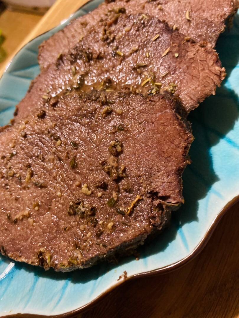 Ингредиенты: Говядина (можно меньше, можно больше), Горчицы, Соль , Сухие травы (какие нравятся), Сушеного чеснока, Масло растительное Способ приготовления: Смешиваем горчицу, масло и приправы. Мясо зачищаем и делаем надрезы с двух сторон. Мясо со всех сторон обмазываем горчицей со специями. Заворачиваем мясо в фольгу и отправляем в духовку при температуре 200-220 гр,на 1,5-3,5 часа, через час температуру убавляем до 180 гр (все зависит от количества мяса, вашей духовки и какую конкретно часть говядины вы запекаете). Достаём из духовки, нарезаем на порции, по-вашему выделившимся соком и подаём к столу. Приятного аппетита 😋.