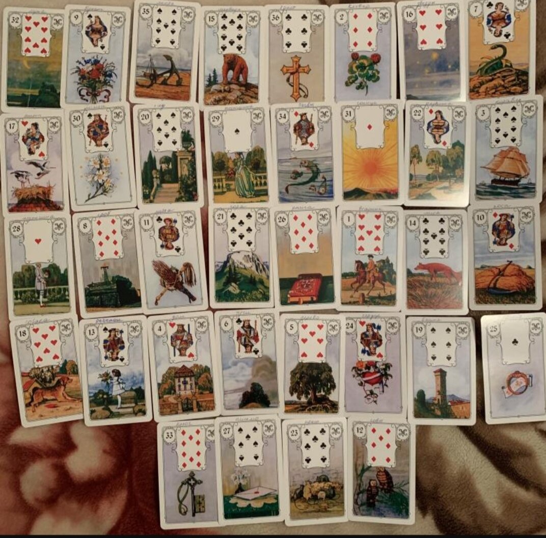 Здравствуйте! Сегодня хочу предложить вам к рассмотрению БрЛ на живой судьбе - развод супругов через обращение в органы власти. В БрЛ загаданы три персоны - Дама (жена), Мужчина (муж) и Змея (любовница мужчины). Таким образом, расклад отражает тему "треугольника" и его трактовка отличается от расклада на одно лицо. Немного предисловии - супруги уже не живут вместе, мужчина переехал жить к другой женщине, недавно они летали отдыхать заграницу.. у пары есть совместный ребенок, также у соперницы тоже есть ребенок (от другого мужчины). Парные расклады (в том числе "треугольники" и "четырехугольники") я начинаю трактовать с позиции кверента - в этом раскладе кверентом выступила женщина (Дама) - смотрю ее карты над головой - это ее мысли, планы, стремления и желания.. Якорь-Медведь-Крест. Медведь выпал в доме Дома (!). Смотрим россельны от Медведя - Лилии (статус), Солнце (защита), Метла (спор), Книга (тайна, закон, знание). О чем вместе говорят карты? Во-первых, это персона, это мужчина (Со