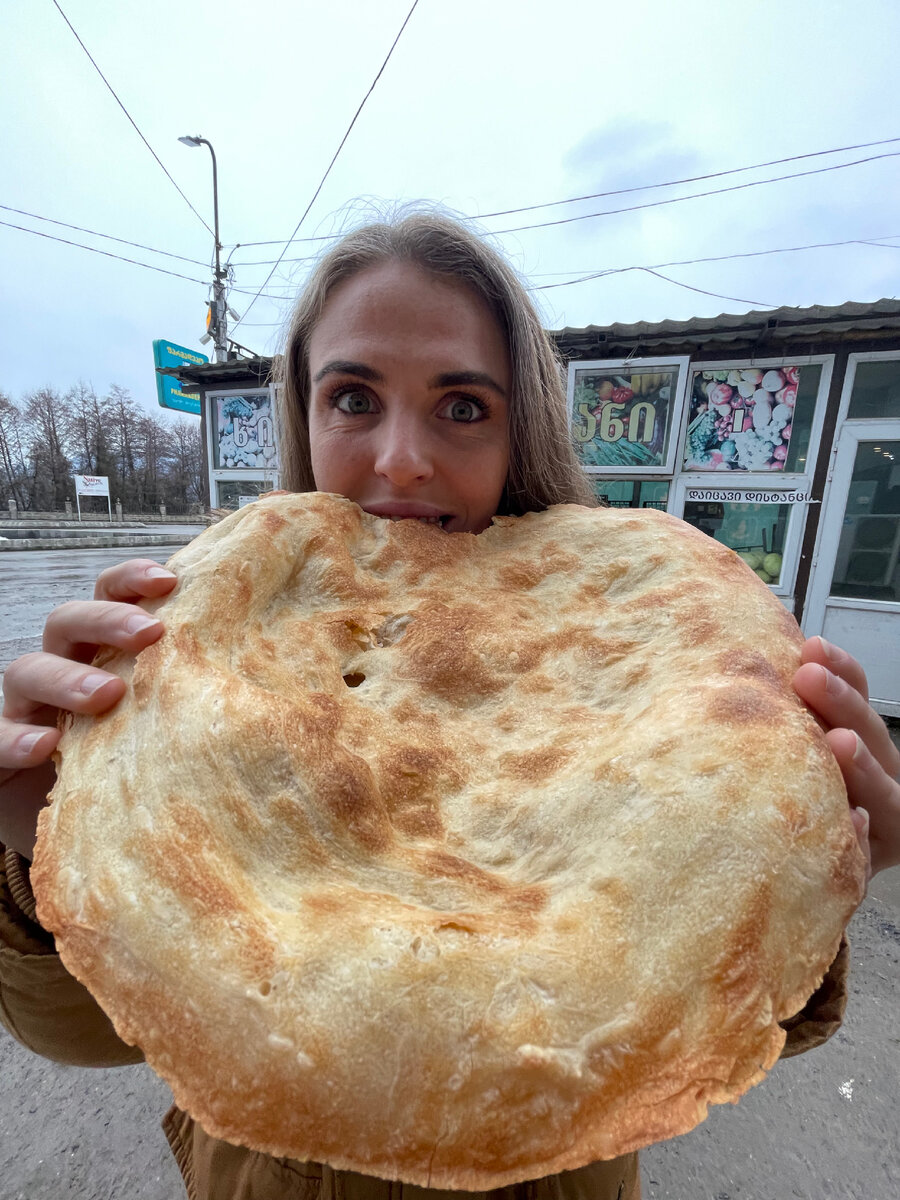 Путешествуя по Грузии, мы приехали в городок под названием Амбролаури. Сам город раскинут вдоль реки Риони, среди высоких гор около 2.000м. В основном туристы приезжают сюда летом, но мы попали сюда в середине Января. В это время года местность не очень красивая - ещё не так много снега, но уже осыпались все зелёные листья с деревьев. Зато проходя мимо местной лавки, мы заглянули вовнутрь и обнаружили местную грузинскую пекарню. В ней пекли наисвежайший ароматный хлеб, который называется лаваш. Посреди комнаты стоял большой тандыр с горящим пламенем. Внутрь тандыра приклеиваются лепёшки из теста, затем тандыр закрывается на 10-15 минут и оттуда вынимается наисвежайший хлеб. Нам достали прямо ‘из печи’ наисвежайший лаваш, в соседнем магазине купили бутылку кефира и тут же все съели не отходя далеко от лавки. И знаете, в тот момент, это был самый вкусный горячий лаваш в мире☺️