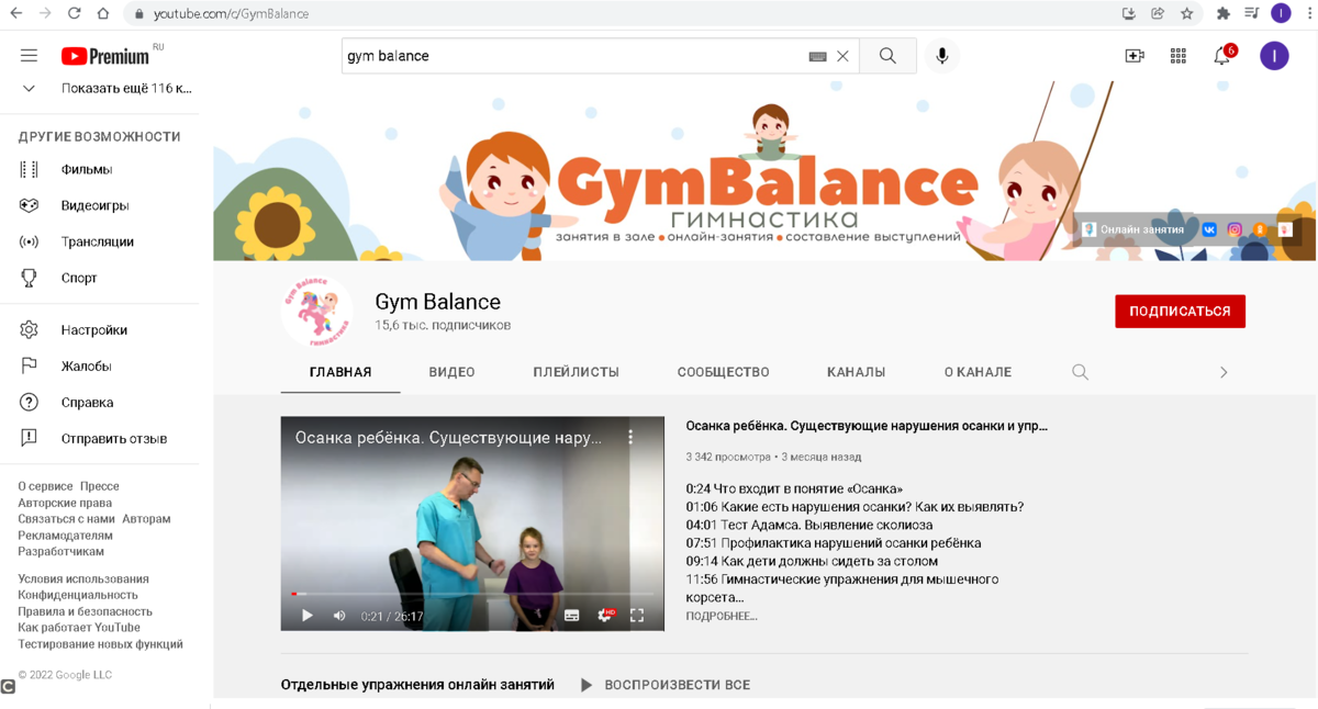 Школа художественной гимнастики GymBalance составила топ каналов по художественной гимнастике. 1. GymBalance https://www.youtube.com/c/GymBalance Канал нашей школы художественной гимнастики Gym Balance. Выкладываем видео уроки по занятию гимнастикой, а также по актерскому мастерству, вокалу, танцами и йогой. Помимо этого также публикуем видео с занятий в залах в Питере и Москве, а также различный образовательный и просто познавательный контент по художественной гимнастике. 2. RGYMRUSSIA. https://www.youtube.com/c/RGYMRUSSIAOFFICIAL/featured Канал всероссийской федерации художественной гимнастики. В нем регулярно выкладываются видео выступления разных гимнасток со всей страны, а также закулисные видео. 3. Мисс Николь. https://www.youtube.com/c/МиссНиколь/featured Канал девочки гимнастки. Помимо того, что она выкладывает видео с соревнований, гимнастка также рассказывает о своих тренировках, школьных буднях и личной жизни. 4. Lena Krupina. https://www.youtube.com/c/LenaKrupina/featur