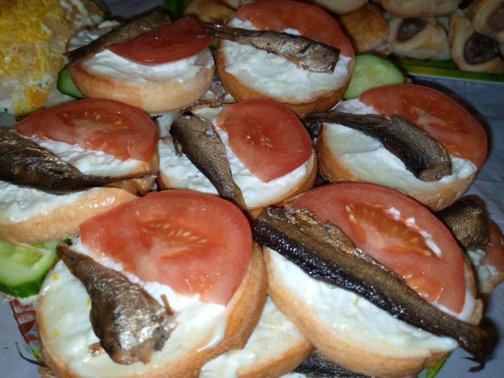 Готовлю часто и быстро, я их просто обожаю вместо помидор можно использовать и огурцы. Не забудь поставить лайк и подписаться ♥️. Новые необычные рецепты выходят очень часто 👈. Ингредиенты: Помидоры, Шпроты, Батон, Майонез , Чеснок Способ приготовления: Нарезаем батон и помидоры. Трем чеснок на мелкой тёрке смешиваем с майонезом. Смазываем батон майонезом с чесноком. Выкладываем помидоры и шпроты на батон как на фото. Приятного аппетита ♥️.